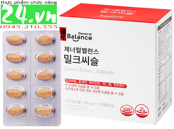 Thực phẩm bảo vệ sức khỏe GENERAL BALANCE MILK THISTLE là sản phẩm giúp hỗ trợ tăng cường chức năng gan, hỗ trợ bảo vệ gan, hỗ trợ giúp hạn chế tác hại của rượu bia. Bên trong 1 viên nén có các thành phần chính bao gồm: