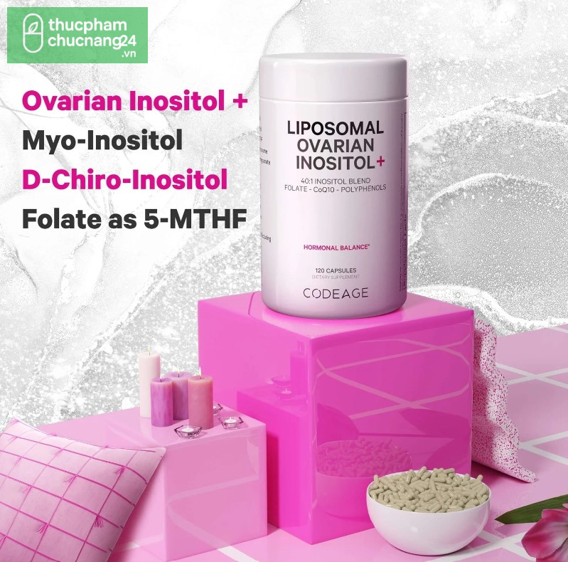 Thực phẩm bảo vệ sức khỏe Codeage Liposomal Ovarian Inositol là giải pháp hỗ trợ chăm sóc nội tiết và sức khỏe sinh sản nữ từ bên trong, với công thức Inositol 40:1 chuẩn nghiên cứu, Folate 5-MTHF hoạt tính và công nghệ Liposomal hiện đại. Sản phẩm phù hợp cho phụ nữ mong muốn cân bằng hormone, cải thiện chức năng buồng trứng và nâng cao sức khỏe sinh sản một cách an toàn, khoa học và bền vững.